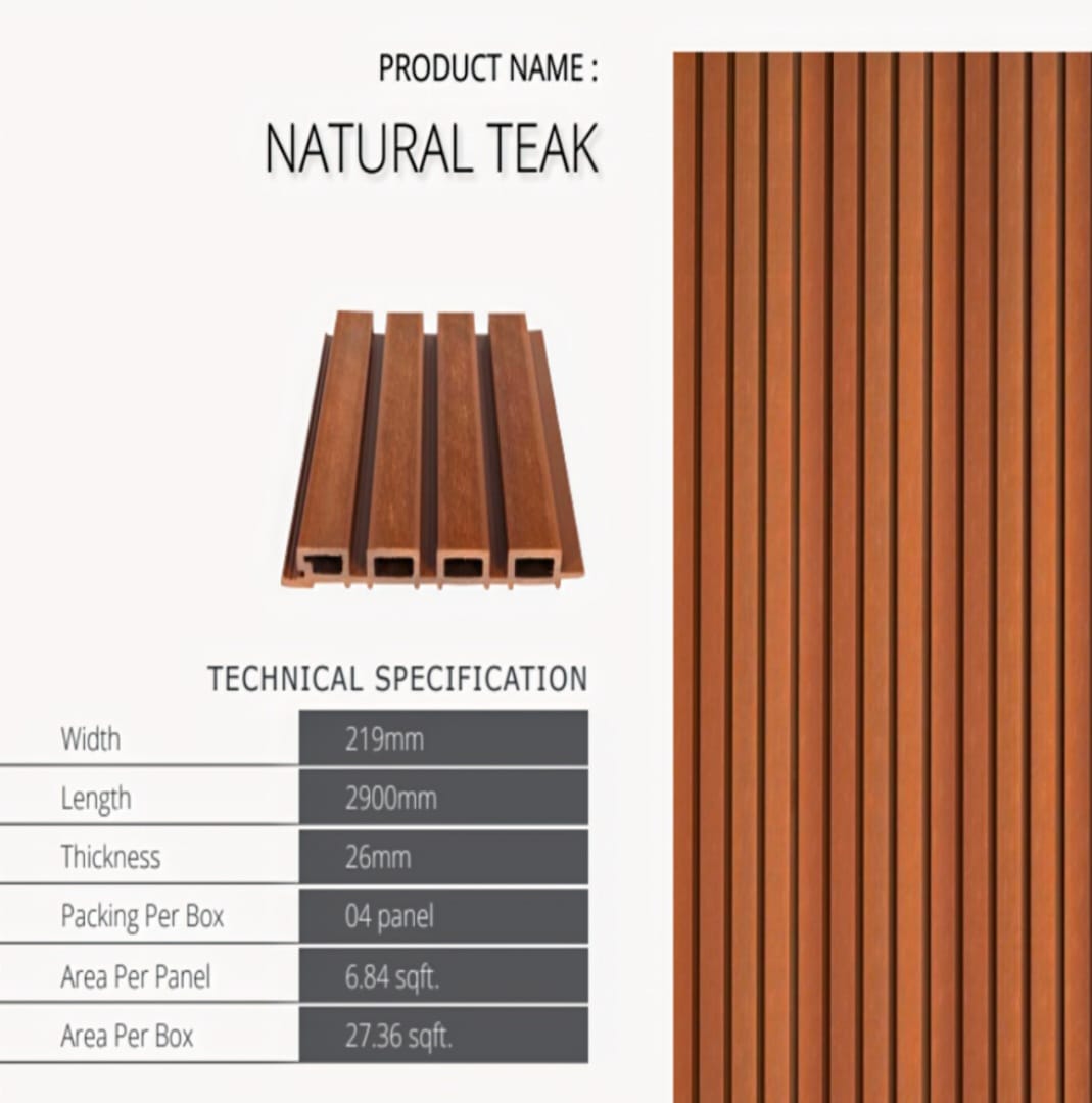 Elevate your space with our high-quality WPC (Wood Plastic Composite) panels at SalahDecor. Made from a blend of wood fibers and recycled plastics, these eco-friendly panels offer the perfect combination of durability, sustainability, and aesthetic appeal. WPC panels are perfect for both indoor and outdoor applications, providing a modern, wood-like appearance with enhanced weather resistance. Ideal for feature walls, ceilings, and exteriors, these panels are easy to install, low maintenance, and built to last.